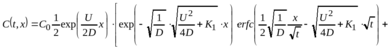 Считая, что коэффициент продольной диффузии D не зависит от координаты x и является постоянным (предположение справедливо, если течение в реке является плавно изменяющимся) получаем решение уравнения (1):