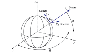 Кроме геоцентрической и геодезической находят применение так называемые локальные системы координат. За начало такой системы может быть принята любая точка Oл земной поверхности или околоземного пространства (рис. 2.3).