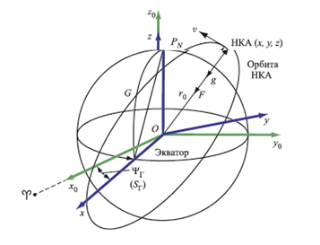 Движение НКА, рассматриваемое в рамках классической механики, происходит под действием сил инерции и гравитационных полей небесных тел, в основном Земли, Солнца и Луны. Доминирующим при этом является гравитационное поле Земли, поэтому движение НКА естественно описывать в системах координат, центр которых совпадает с центром масс Земли, т.е. геоцентрических системах. Среди таких систем классической является инерциальная геоцентрическая декартова система [№№]