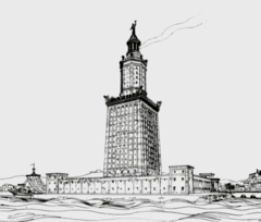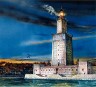 К III веку до н. э. относится первое упоминание об использовании в прибрежной навигации специально созданных для этого сооружений – маяков. Входивший в список «Семи чудес света», первый в мире маяк (рис. В ) был построен у берегов основанного Александром Македонским в дельте Нила египетского порта Александрия, на маленьком острове Фарос (отсюда названия маяка – Александри́йский или Фа́росский).