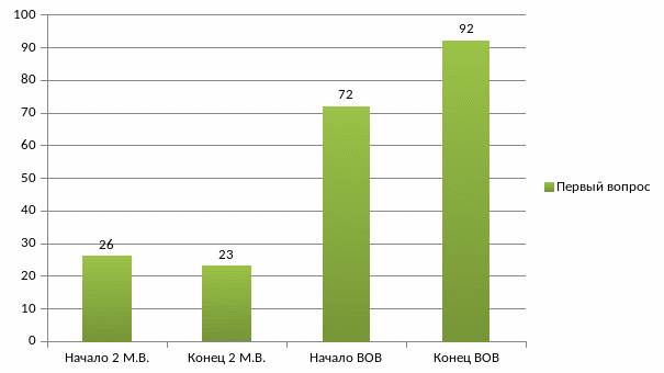Молодежь довольно часто путает ВОВ и Вторую мировую войну. В первом пункте своего опросного листа я хотел узнать, знают ли респонденты точные даты начал и окончаний Второй мировой и Великой Отечественной войн.