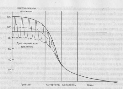 Рис. 20. Изменение кровяного давления в разных частях сосудистого русла