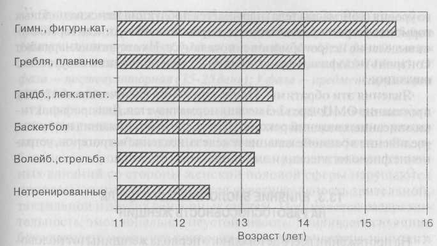 Рис. 36. Возрастные периоды первых менструаций у спортсменок
