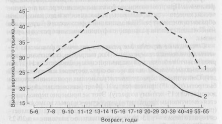 Рис. 46. Возрастная динамика показателя высоты вертикального прыжка с места: