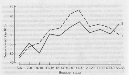 Рис. 45. Возрастная динамика показателей в теппинг-тесте