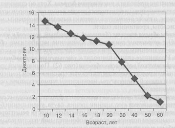 Рис. 63. Возрастная динамика аккомодации глаза