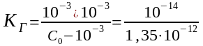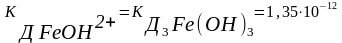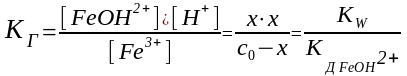 х - равновесная концентрация гидролизованных ионов FеОН 2+