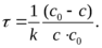 где с – текущая концентрация вещества А в момент времени τ, с0 – начальная концентрация вещества А, k – константа скорости, τ – время.