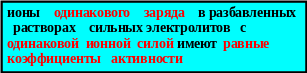 Средний коэффициент активности электролита - среднее геометрическое коэффициентов активности образующих его ионов: