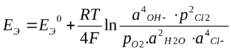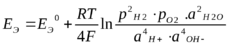Е0 Э = Е0 О2/ОН– - Е0 Н+/Н2 = 0,401 - 0,0 В = 0,401 В