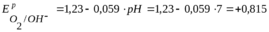 Согласно уравнению Нернста равновесные потенциалы вероятных окислителей (Н+ и О2):