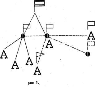 При централизованном способе управлении несколько пунктов наведения, как правило, не более трех, замыкаются на КП иап (рис. 1). В свою очередь, командные пункты полков замыкаются на КП объединений и соединений ПВО. При этом распределение целей производится вышестоящими КП между соответствующими нижестоящими (т.е. КП корпуса — между КП иап, КП иап — между ПН).