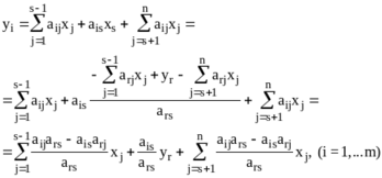 , подстановки его во все остальные уравнения системы и записи полученной системы в виде новой таблицы, аналогичной исходной. Легко убедится, что новая таблица имеет вид: