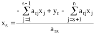 -строке матрицы есть отрицательные коэффициенты, то полученное решение может быть улучшено если соответствующая ему переменная вместо нулевого значения получит какое-либо положительное значение. Для определение допустимого положительного значения этой переменной находится минимальное неотрицательное значение отношения