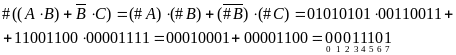 Составим всевозможные элементарные суммы для A, B и C и выпишем их изображающие числа: