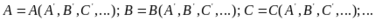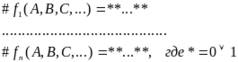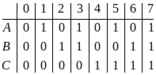 Составим всевозможные, так называемые, элементарные произведения для трех элементов A,B и C и выпишем их изображающие числа :