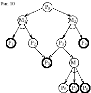 Вершину И/ИЛИ-графа, соответствующую описанию исходной задачи, будем называть начальной вершиной. Вершины же, которые соответствуют описаниям элементарных задач, будем называть заключительными вершинами. В графе, показанном на рис.10, начальной является вершина P0, а заключительными – вершины P1, P4, P5, P7 и P8 (они изображены жирными кружками).