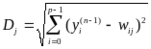где j – индекс нейрона в слое n, i – индекс суммирования по нейронам слоя (n-1), wij – вес синапса, соединяющего нейроны; выходы нейронов слоя (n-1) являются входными значениями для слоя n. Корень в формуле (4) брать не обязательно, так как важна лишь относительная оценка различных Dj.