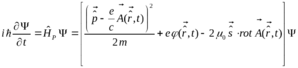 Эволюция спинорной ВФ частицы с зарядом е во внешнем электромагнитном поле описывается уравнением Паули: