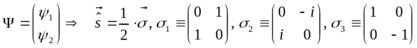 Спин – собственный момент количества движения частицы. При безразмерном (в единицах ħ) определении момента он может принимать целые либо полуцелые значения. Большинство частиц обычного вещества (протоны, нейтроны, электроны) – это частицы со спином ½. Пространством чистых состояний для частицы со спином ½ является пространство двухкомпонентых спинорных волновых функций, в котором оператор спина может быть определен с помощью матриц Паули: