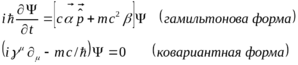 Релятивистские квантовые частицы со спином ½ описываются теорией Дирака. Волновое уравнение для свободных частиц имеет вид