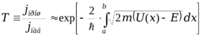 В квантовой теории частица может проходить потенциальный барьер даже в том случае, когда ее энергия меньше высоты барьера. Это явление называется тунеллированием. Вероятность тунеллирования в общем случае вычисляется на основании решения стационарного уравнения Шредингера для энергий, отвечающих области непрерывного спектра. В случае, когда взаимодействие частицы с барьером квазиклассично (ширина барьера существенно превосходит среднее значение длины волны), коэффициент прохождения барьера определяется выражением