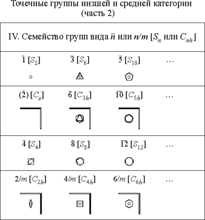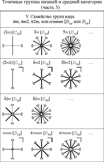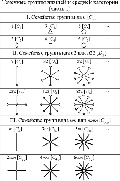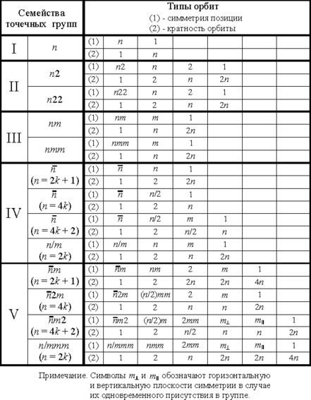 Примечание. Символы m и m обозначают горизонтальную и вертикальную плоскости симметрии в случае их одновременного присутствия в группе.