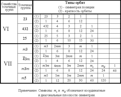 | Примечание. Символы mc и md обозначают координатные и диагональные плоскости симметрии. |