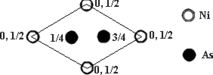 | NiAs | Гексагональная ячейка с отношением параметров c/a = 1,39. | ||