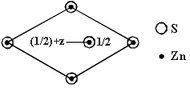 | ZnS | Атомы S в вершинах кубической ячейки и в центрах ее граней; атомы Zn в центрах четырех из восьми октантов (в шахматном порядке) | ||