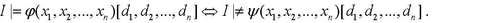 Определение. Формула ϕ называется истинной в интерпретации I, если для любого набора предметов d1, d2, …, dn
