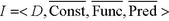 Определение. Алфавит (сигнатура) КЛП – это набор счетных множеств: