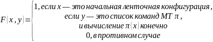 Проблема останова машин Тьюринга алгоритмически неразрешима, т. е. не существует алгоритма (машины Тьюринга), способного вычислить следующую функцию
