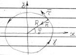 - единичный касательный вектор к окружности.