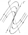 Пусть замкнутая кривая близка к сепаратрисе. Для определенности рассмотрим следующую картинку.
