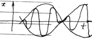Такое движение называется квазипериодическим движением. Первые два члена в нем – это свободные колебания, последний член – вынужденные колебания. Амплитуда вынужденных колебаний (и, значит – амплитуда полного движения) растет сколь угодно велико при приближении частоты вынуждающей силы к частоте свободной системы. Это явление называется резонансом.