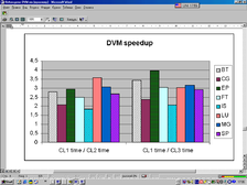 Ниже на диаграммах показано соотношение времен выполнения MPI и DVM версий тестов NAS (класс С) на следующих конфигурациях: