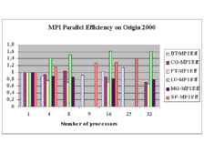 Два других теста из пакета NPB 2.3 (IS и EP) не использовались при исследовании применимости HPF-подхода и гибридного подхода OpenMP+MPI. Причиной этого было то, что первый из них написан на языке Си и не является представительным (параллельная сортировка целых чисел), а второй служит для демонстрации абсолютного параллелизма и его распараллеливание ни у кого никаких проблем не вызывает.