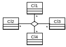 для любой четверки экземпляров классов Cl1, Cl2, Cl3, Cl4 допускается любое количество соединений, связывающих эти экземпляры;