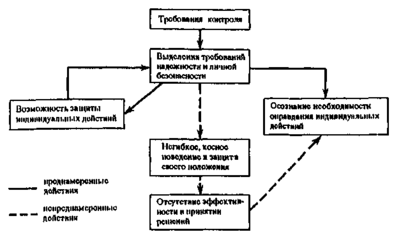 Модель бюрократии Р. Мертона начинается с требований контроля над элементами социальной структуры организации. Эти требования заключаются в попытке создания у членов организации необходимого поведения и мотивации на выполнение заданий. Руководитель-бюрократ в этих условиях начинает заботиться прежде всего о безопасности своего положения, в связи с чем он предпочитает опираться на формальные правила и свою формальную власть. За этими правилами он не видит реальных исполнителей и все более утрачивает контроль за ситуацией. Это заставляет его еще больше заботиться об упрочении и защите своего служебного положения. Круг замыкается. Руководитель не может обеспечивать надлежащий контроль и принятие обоснованных управленческих решений.
