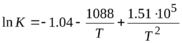 Зависимость константы равновесия реакции 2C3H6(г) = C2H4(г) + C4H8(г) от температуры (в К) описывается уравнением