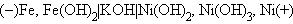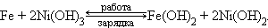 В заряженном щелочном железо-никелевом аккумуляторе анодом служит железо, катодом – гидроксид никеля (III), электролит – 20%-й раствор KOH: