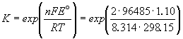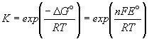 Зная стандартную ЭДС, можно рассчитать константу равновесия протекающей в элементе реакции: