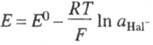AgHal + е (Hal - галоген), а ур-ние Нернста имеет вид: .