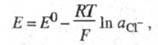Потенциал E электрода рассчитывается по формуле Нернста: