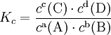 На практике в расчётах, не требующих особой точности, значения активности обычно заменяются на соответствующие значения концентраций (для реакций в растворах) либо парциальных давлений (для реакций между газами). Константу равновесия при этом обозначают Kc или Kp соответственно. Впервые закон действующих масс был выведен из кинетических представлений Гульдбергом и Вааге, а термодинамический вывод его дан Вант-Гоффом в 1885 году[3].