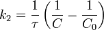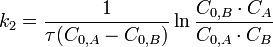 Во втором случае выражение для константы скорости реакции будет выглядеть так: