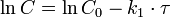 Поскольку Т(1/2) - это временная характеристика экспоненциальных процессов первого порядка, он связан с k следующим соотношением: