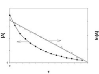 Если начальные концентрации веществ A и B обозначить, соответственно, a и b и ввести степень превращения x ([A] = a - x, [B] = b + x), то кинетическое уравнение приобретает вид: