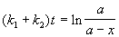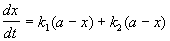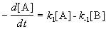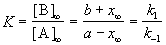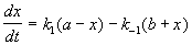 Если начальные концентрации веществ A и B обозначить, соответственно, a и b и ввести степень превращения x ([A] = a - x, [B] = b + x), то кинетическое уравнение приобретает вид: